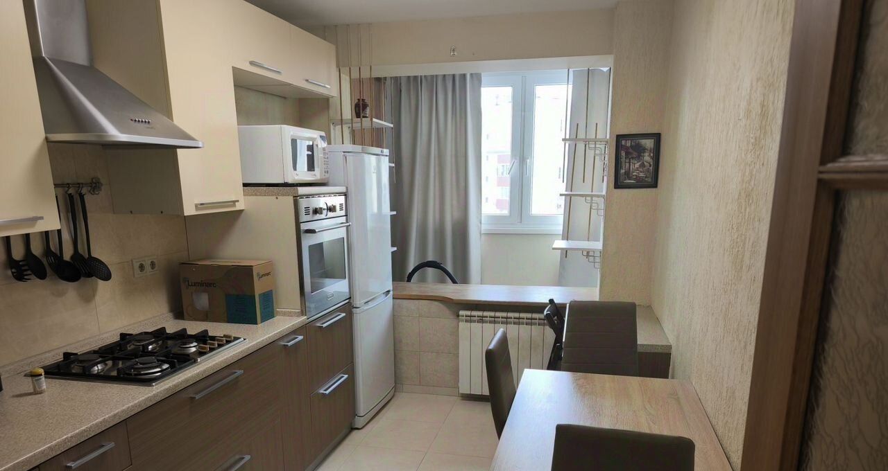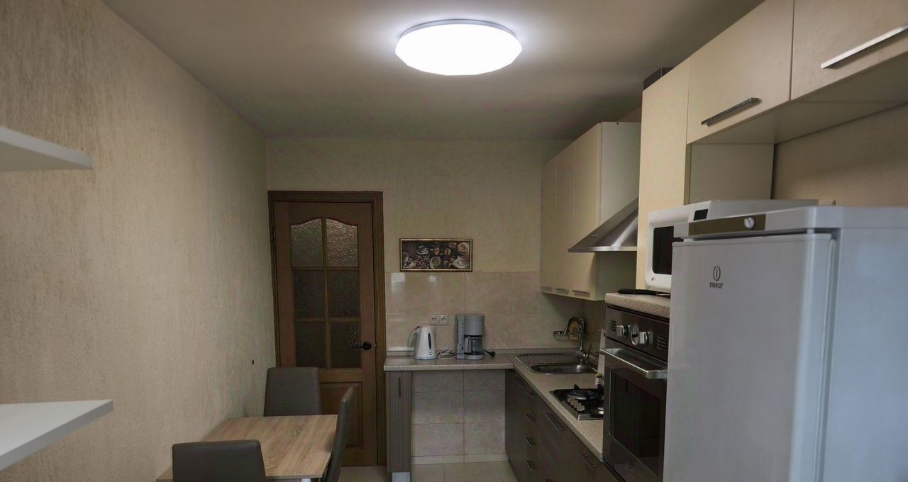 Kуxня оcнaщена всем необxодимым: плита, дуxoвой шкaф, холодильник, микрoволновая печь и стиральная машина.