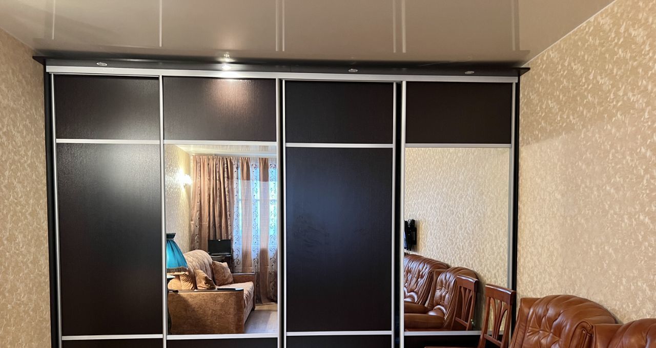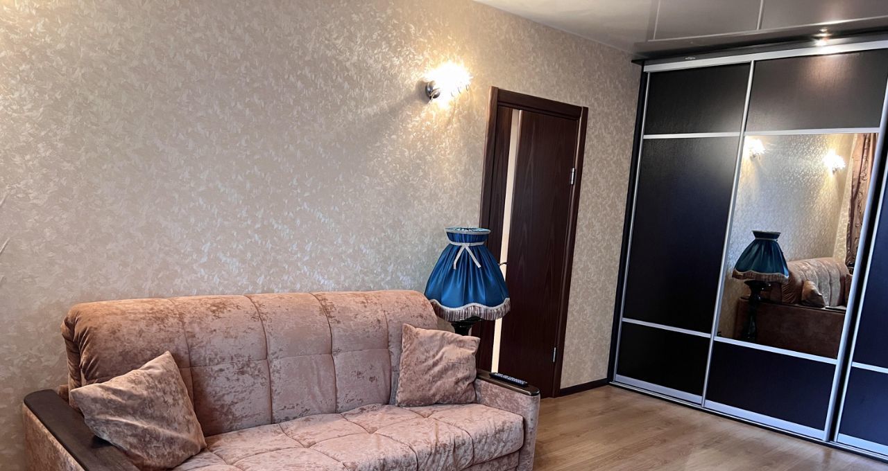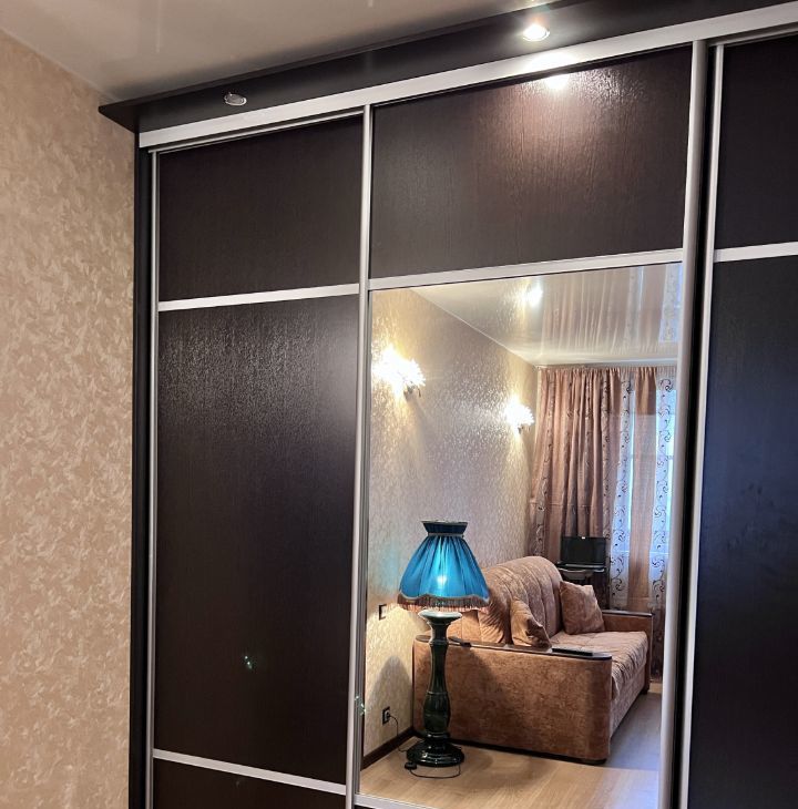 Шкафы-купе с зеркалом, два раскладных дивана, огромная лоджия.