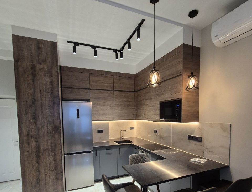 Квартира с дизайнерским ремонтом, полностью меблирована и оснащена всей необходимой техникой для комфортного проживания. В вашем распоряжении кондиционер, холодильник, посудомоечная и стиральная машины, а также телевизор. Совмещенный санузел оборудован ванной и душевой кабиной. Интернет проведен, поэтому всегда можно оставаться на связи.