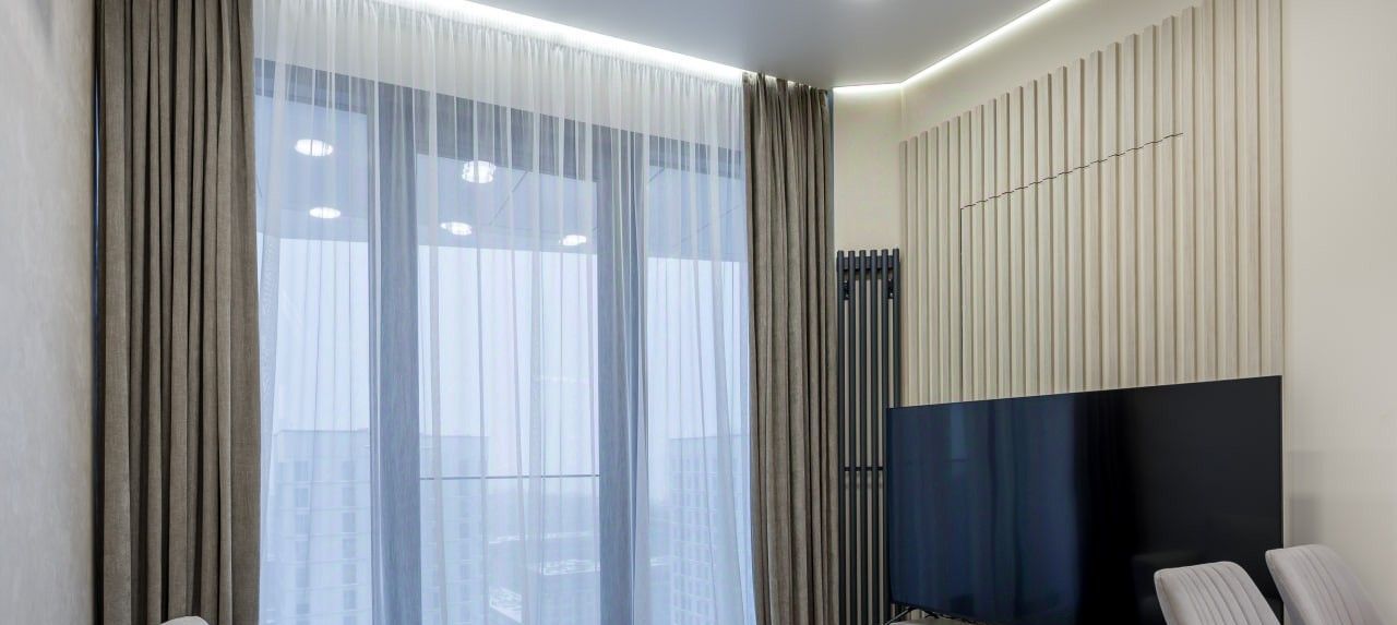 • Панорамные окна с красивым видом на ночную Москву