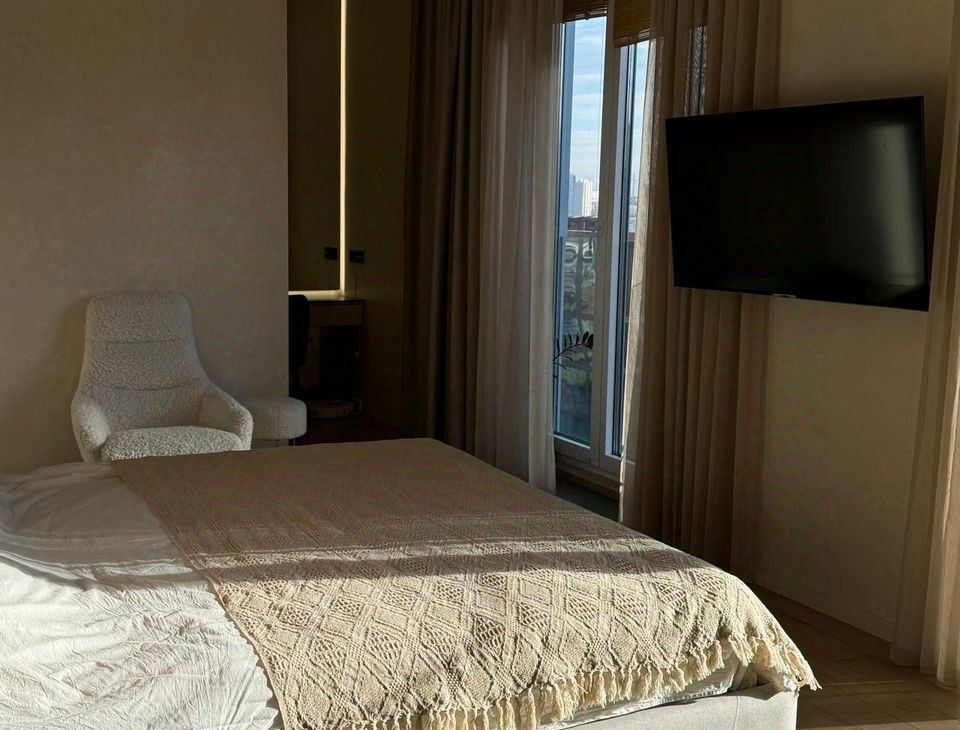 Сдается квартира с готовым ремонтом в современном жилом комплексе бизнес-класса ЗилАрт. В квартире никто не жил, абсолютно новый ремонт и новая техника и мебель. Квартира площадью метров на этаже. На полу выложена плитка и инженерная доска. Стены покрыты декоративной штукатуркой. Потолок из гипсокартона. Установлен магистральный фильтр для очистки воды во всей квартире. На кухне фильтр осмос для питьевой воды. В квартире при входе гостевой санузел. Ванная полностью оборудована: ванна, установлена душевая кабинка, унитаз, гигиенический душ, раковина. Установлена кухня со всей техникой: холодильник, индукционная варочная панель, духовой шкаф и посудомойка. Столешница сделана из натурального камня: кварцевый агломерат. Окна с отличным видом на жилой комплекс ЗилАрт. Для проживания также имеется: посуда, кофе-машина, чайник, тостер, постельное белье, полотенце, халаты. В спальне ортопедический матрас. Есть гардеробная комната.