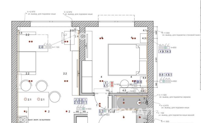 * Кухня-гостиная: встроенная мебель, холодильник, посудомоечная машина, индукционная плита, духовой шкаф, микроволновка, вытяжка, угловой диван, ковер, рабочий стол, большой смарт-ТВ, бризер, кондиционер, теплый пол, зонированное освещение.