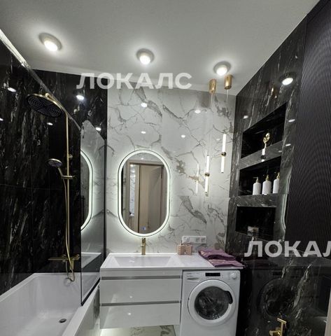 * Санузел: ванна из литого мрамора, зеркало с подогревом, стиральная машина с сушкой, электрический полотенцесушитель, теплый пол