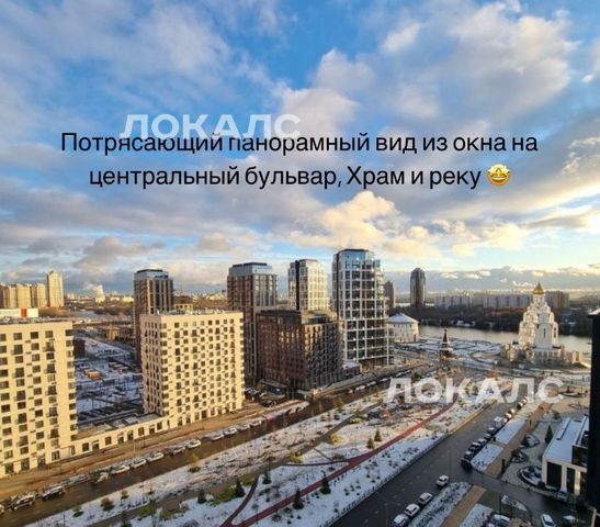 * Потрясающий панорамный вид на центральный бульвар района, храм и Москву-реку, без лишних крыш перед глазами.