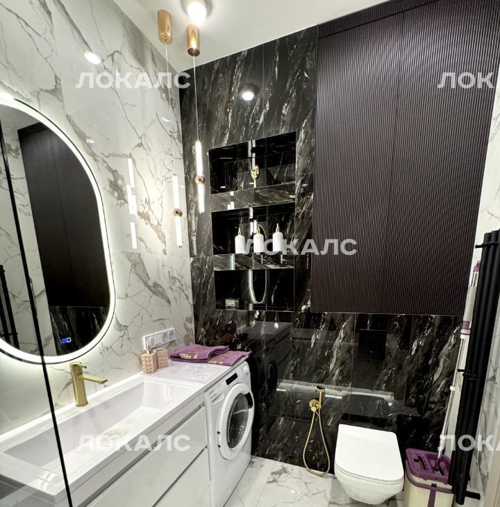 * Санузел: ванна из литого мрамора, зеркало с подогревом, стиральная машина с сушкой, электрический полотенцесушитель, теплый пол