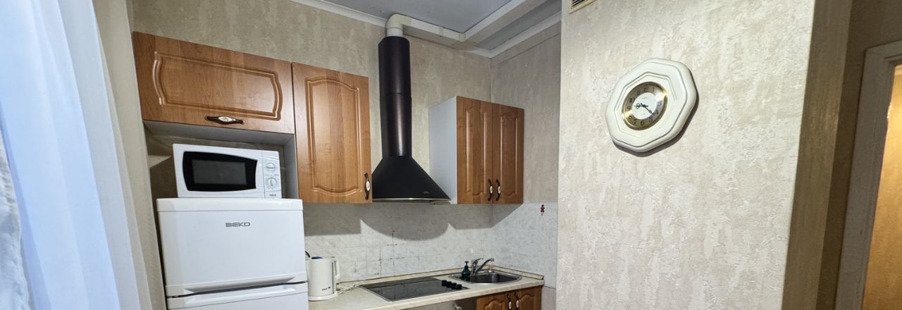 В квартире сделан косметический ремонт. Здесь есть всё необходимое для комфортного проживания: на кухне и в комнате установлена мебель, а из техники доступны кондиционер, холодильник, телевизор и стиральная машина. Санузел совмещённый, оборудован ванной. Окна выходят на улицу, поэтому в квартире всегда светло и просторно. Также имеется балкон, где можно насладиться свежим воздухом.