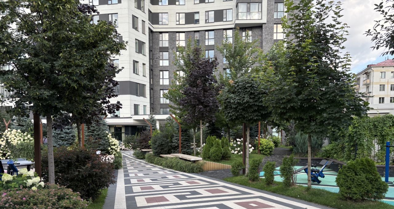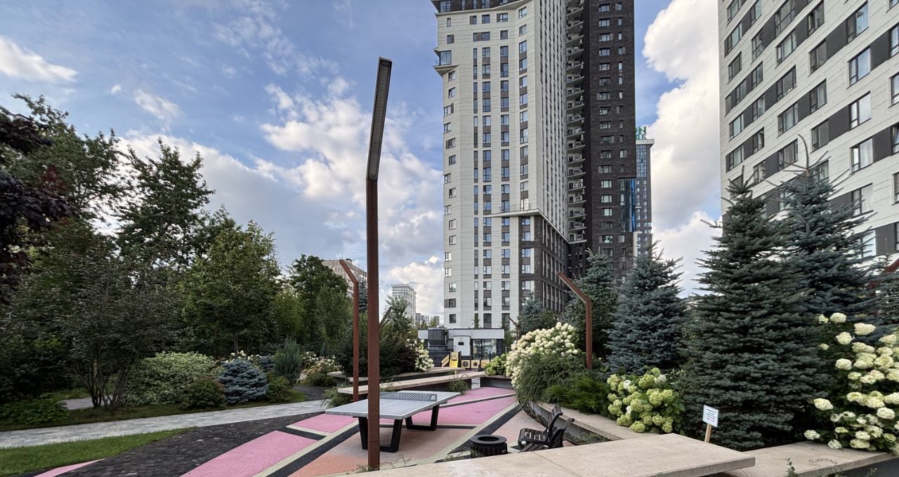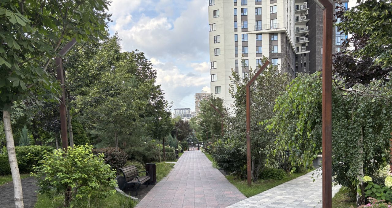 Закрытый двор без машин с детскими площадками и настоящим ландшафтным парком. Вокруг хорошо развита инфраструктура: рядом находятся школы, детские сады, клиники и магазины. всё что нужно в шаговой доступности. Это идеальное место для жизни с семьей. Удобное транспортное сообщение позволяет быстро добраться до центра города и других районов. До новой станции метро Бульвар Генерала Карбышева менее 5 минут пешком.