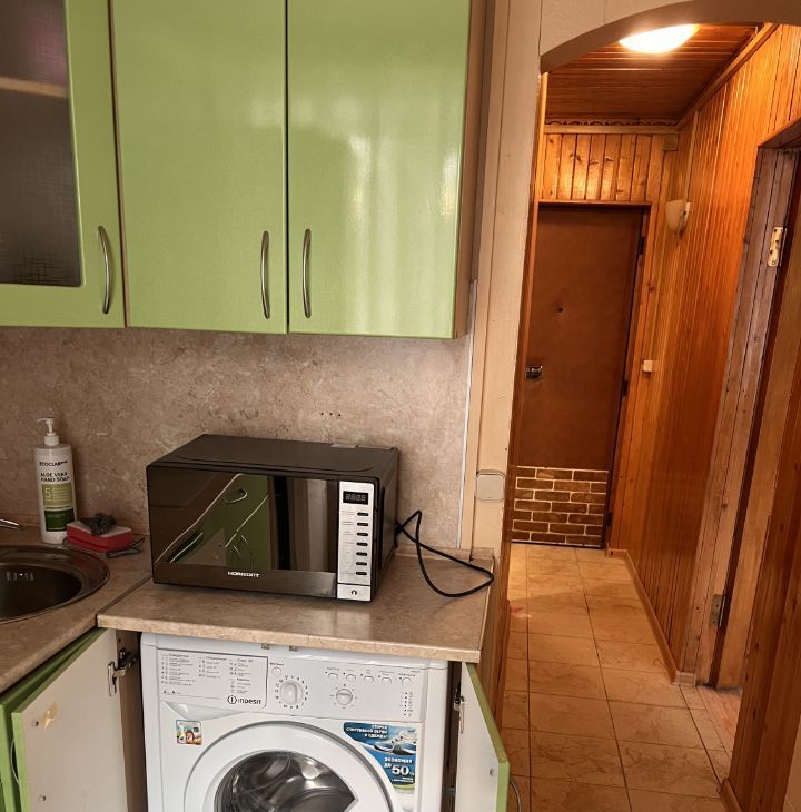 В квартире сделан косметический ремонт, она полностью готова для комфортного проживания. Окна выходят во двор, поэтому в помещении всегда тихо и спокойно. В комнате и на кухне есть вся необходимая мебель. Из техники в вашем распоряжении холодильник, телевизор и стиральная машина. Санузел совмещённый, с ванной.