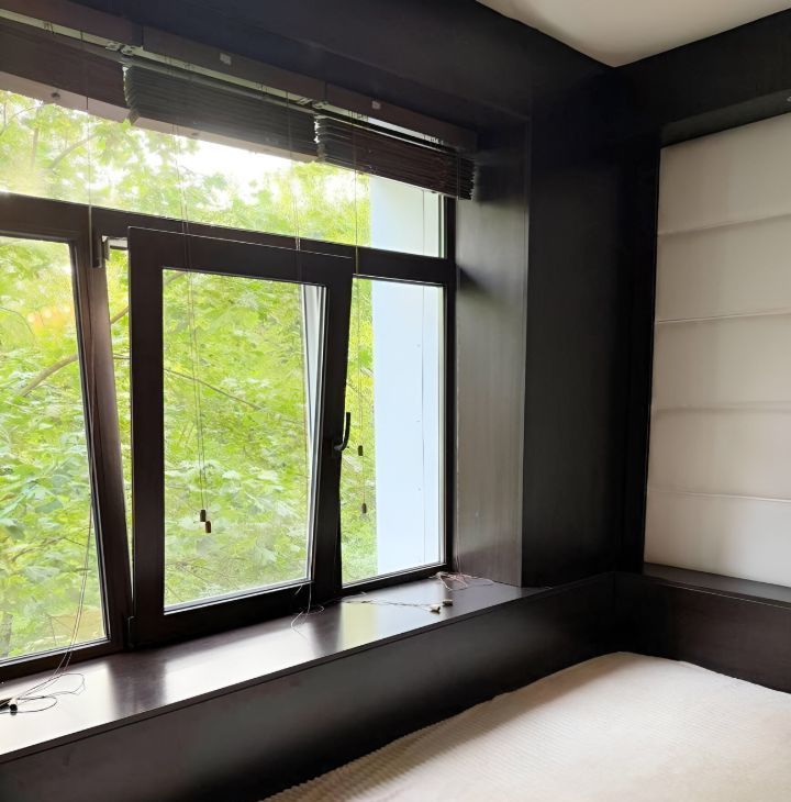 Уютная однушка с видом на тихий двор, в тёплое время года вид из окна - зеленая листва.