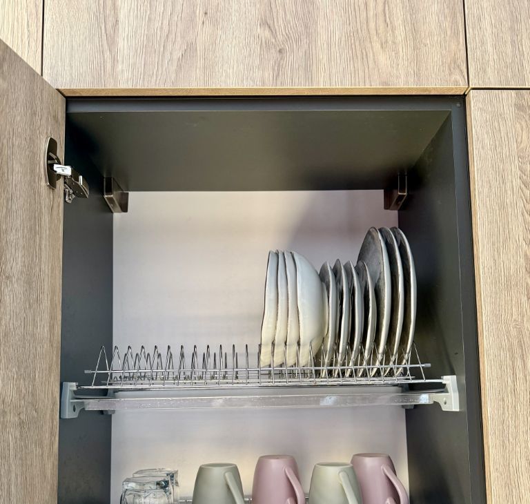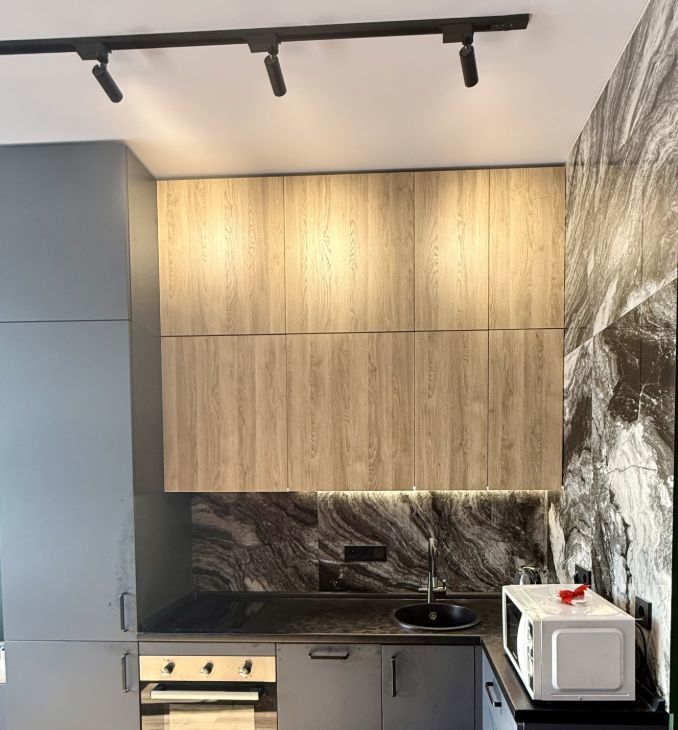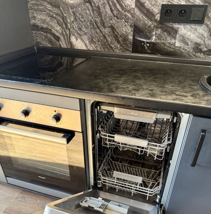 Кухня-гостиная: зона отдыха с мягким диваном, обеденная группа на 3 персоны, полноценная кухня с плитой, духовкой, посудомойкой, микроволновкой, электрическим чайником и набором посуды. Установлен фильтр очистки воды.