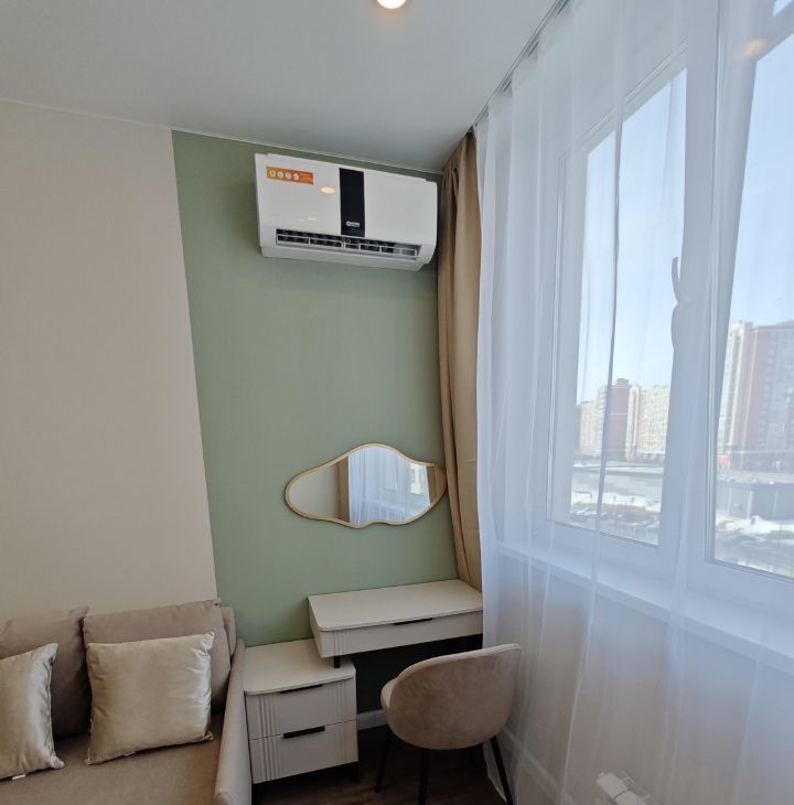 Уютная и просторная комната: комфортный раскладной диван-кровать со спальным местом 160*200, туалетный столик, комод для белья, телевизор, кондиционер.
