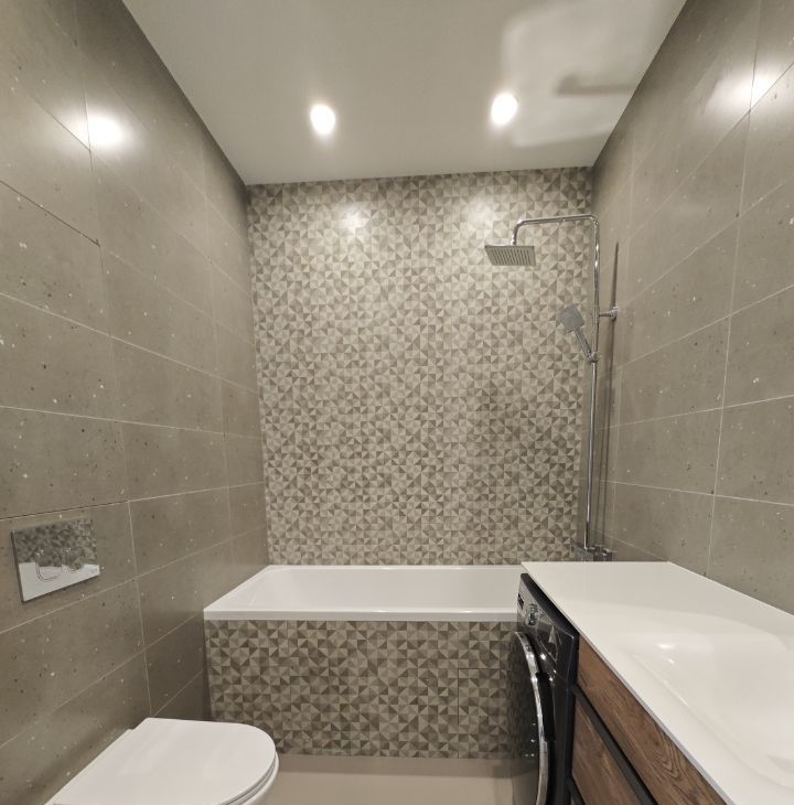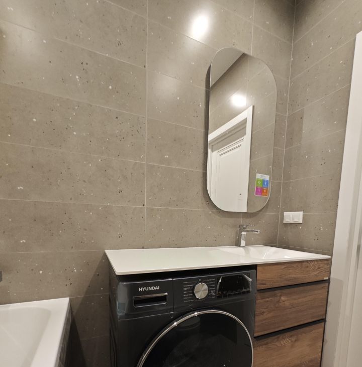 Ванная комната — новая мебель, вместительная стиральная машина(с сушкой), система тропического душа с автоматической регулировкой температуры воды, зеркало с диммируемым освещением, электрический полотенцесушитель.