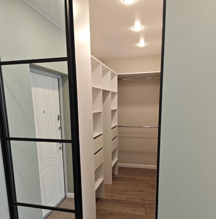 Функциональная планировка. Хранение одежды и вещей вынесено в просторную гардеробную.
