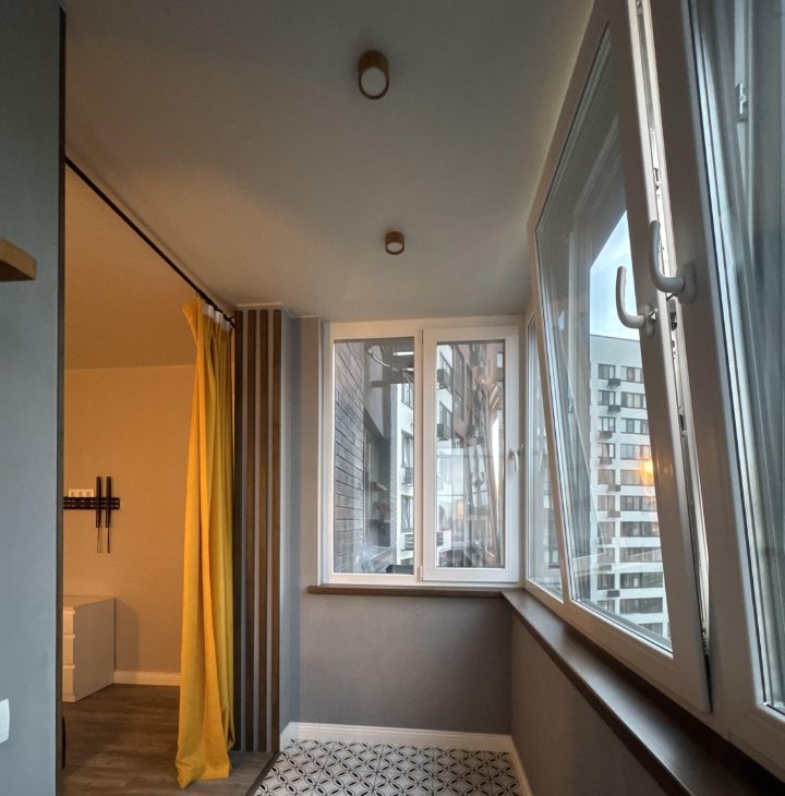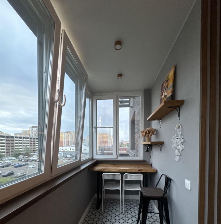 На объединенном с комнатой балконе оборудован кабинет, теплые полы.