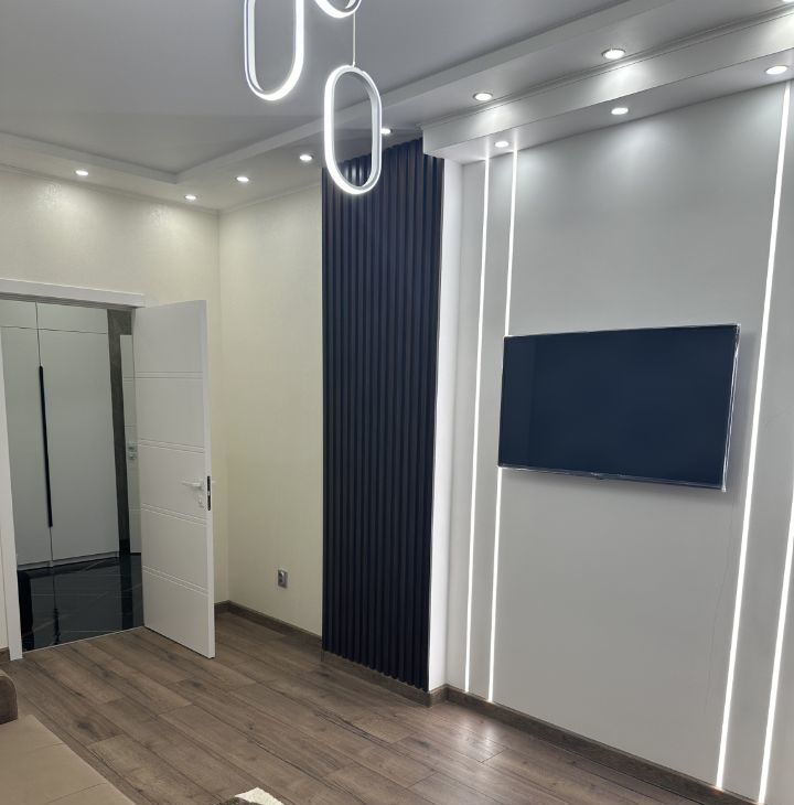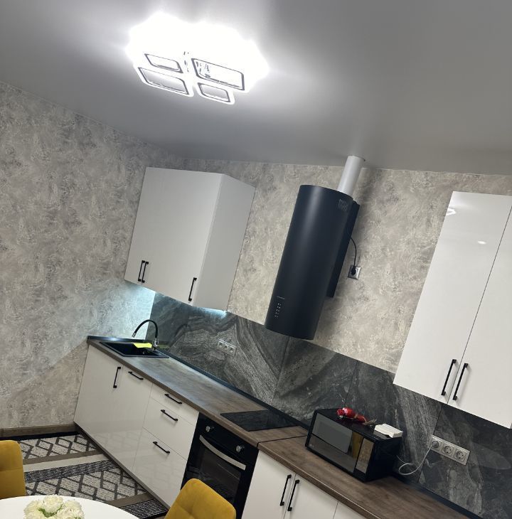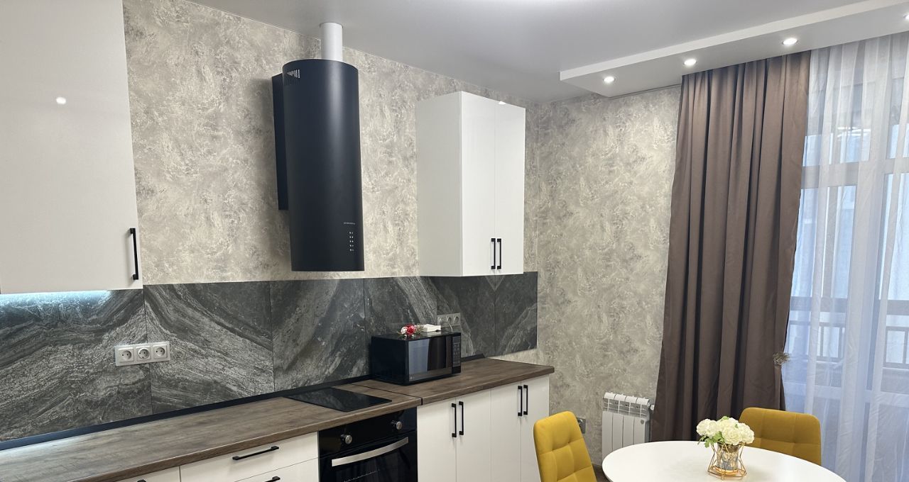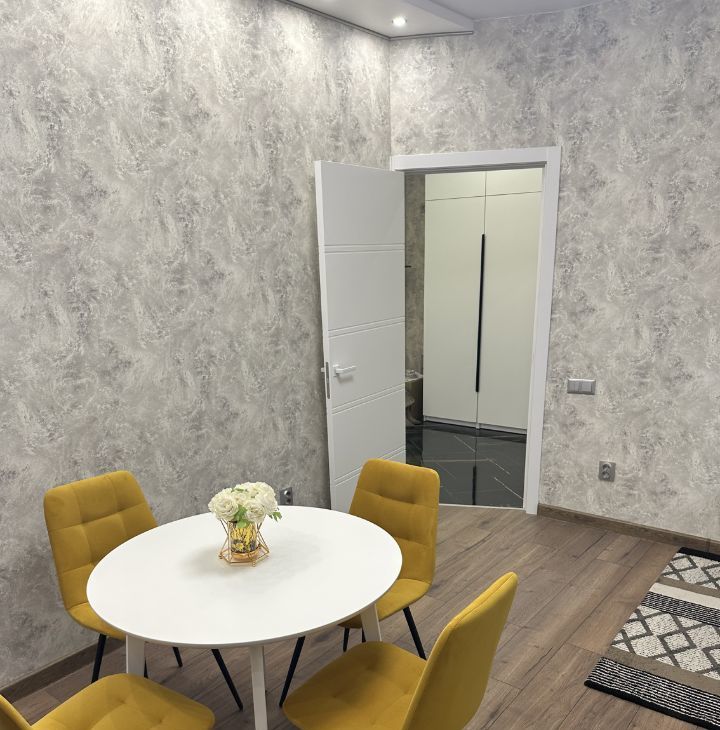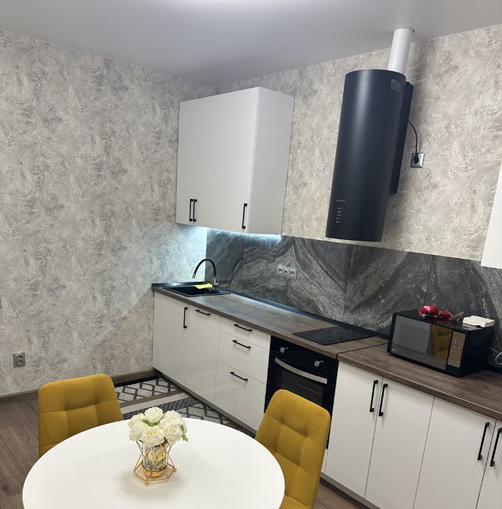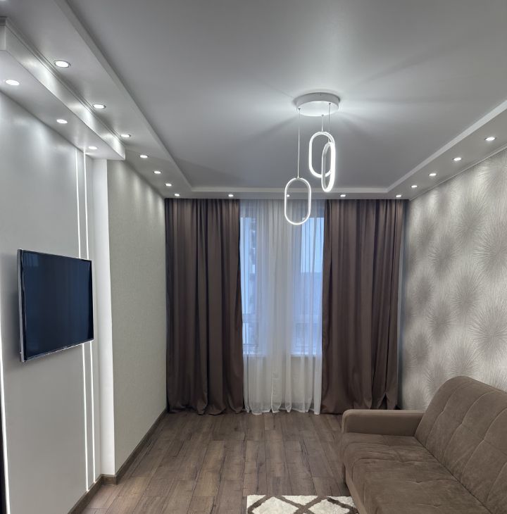 В квартире выполнен евроремонт, что обеспечивает современный и стильный вид. В вашей распоряжении будут все необходимые для жизни удобства: на кухне имеется мебель и техника, включая посудомоечную машину, а в комнате — телевизор и мебель для отдыха. Санузел совмещенный, с душевой кабиной. Дополнительно имеются шкафы в прихожей и в комнате.