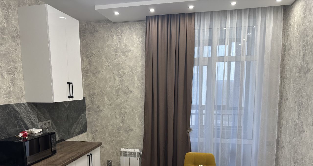 Предлагаем в аренду уютную однокомнатную квартиру площадью 48 кв. м в современном монолитном доме 2022 года постройки. Квартира расположена на 8 этаже 15-этажного здания, а высота потолков составляет 2,7 метра. Жилая площадь квартиры — 22 кв. м, кухня — просторная, 12 кв. м. Окна выходят на улицу, создавая светлую и комфортную атмосферу.