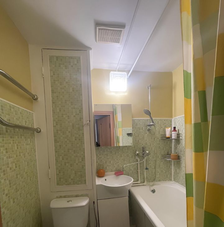 В квартире сделан косметический ремонт, всё необходимое для комфортного проживания уже есть: в комнате установлена мебель, а на кухне — холодильник. Для вашего удобства также имеется стиральная машина. Санузел совмещённый, с ванной. Окна выходят на улицу, что обеспечивает хорошую освещённость помещения.
