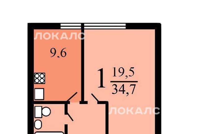 1-к кв. Москва Чапаевский пер., 5К1 (34.7 м²)