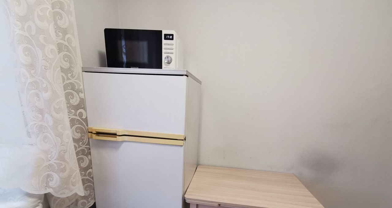 Квартира после качественн ремонта полностью готова для комфортного проживания. В комнате и на кухне есть мебель, а также вся необходимая техника: кондиционер, холодильник, стиральная машина, печь СВЧ, вытяжка. Санузел совмещённый и оборудован душевой кабиной. Окна выходят на улицу, что обеспечивает хорошее естественное освещение. Также имеется застекленный балкон, где можно приятно проводить время.