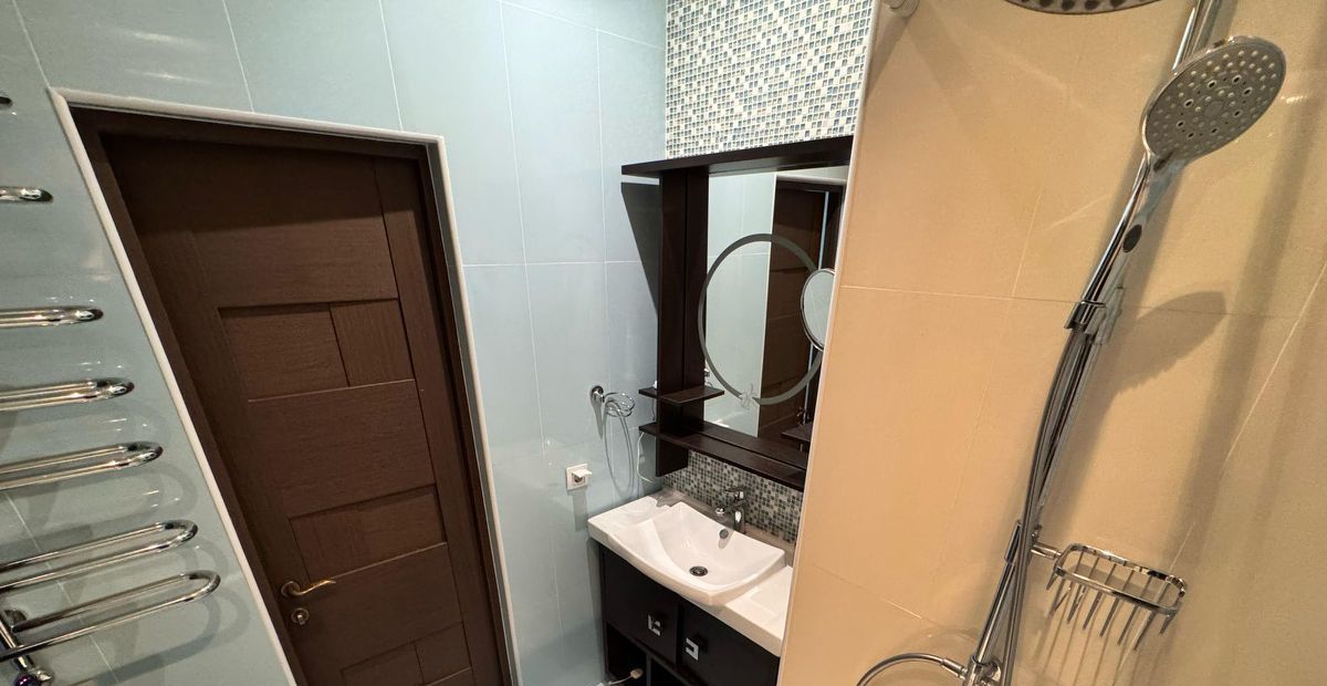 В квартире сделан дизайнерский ремонт, который создает атмосферу уюта и комфорта. Полностью меблирована: есть мебель на кухне и в комнате. Из техники в вашем распоряжении кондиционер, холодильник, телевизор, стиральная и посудомоечная машины. Ванная комната оборудована современной ванной. Просторный балкон — отличное место для утреннего кофе или вечернего отдыха.