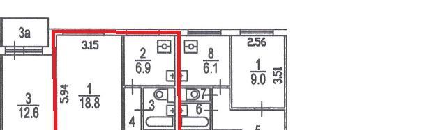 Жилая площадь 19 кв.м, кухня - 6,7 кв.м.