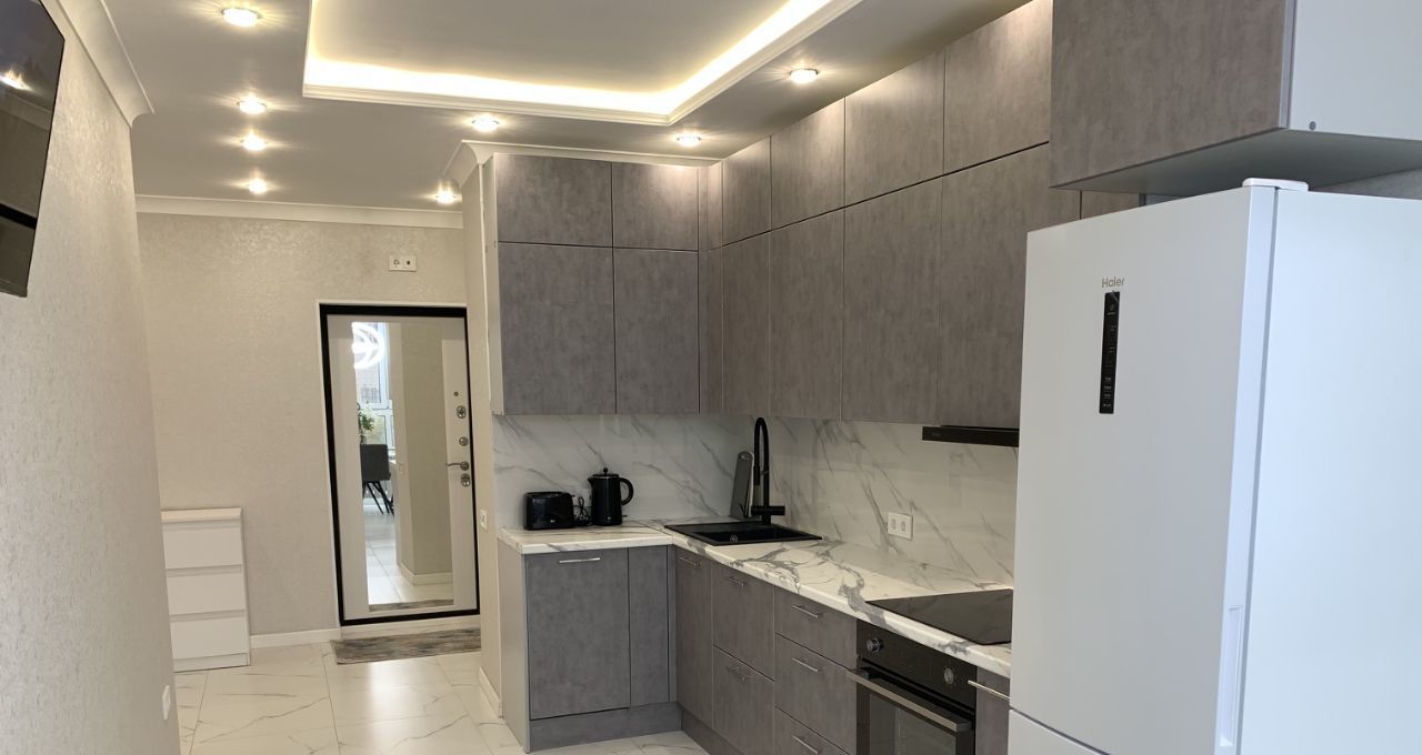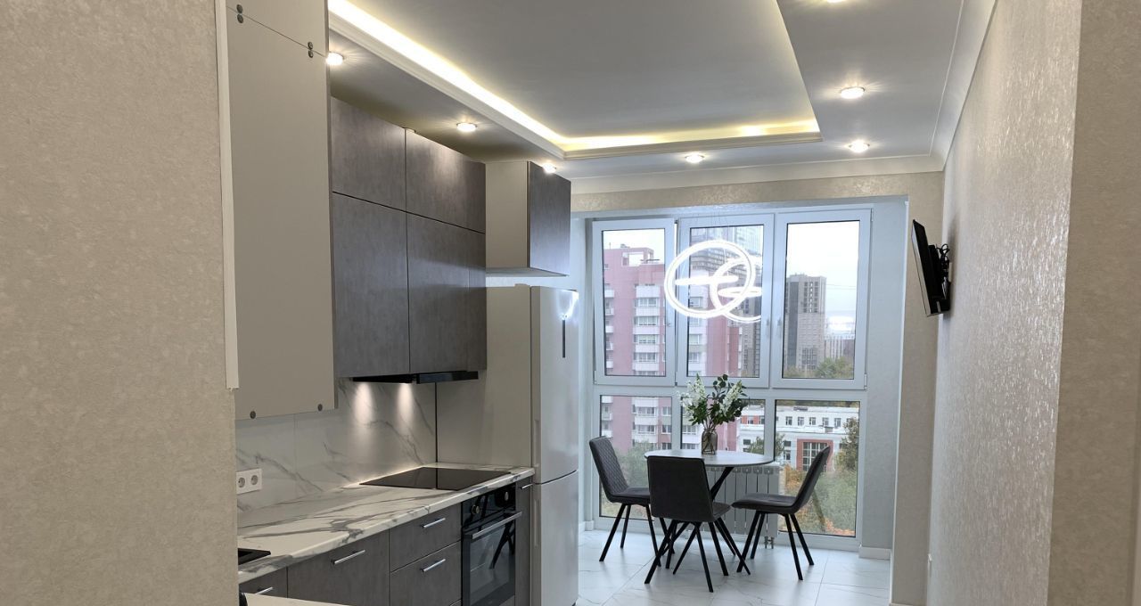Стильная и уютная евро-двушка с новым хорошим ремонтом сдается на длительный срок. Кухня-гостиная 15 м², спальня 16 м². Все новое. Квартира полностью меблирована, в спальне большая полноценная кровать, кондиционер, Smart TV в спальне и на кухне, холодильник, плита, духовой шкаф, посудомоечная машина, стиральная машина, тостер и чайник. Есть все необходимое для комфортного проживания.