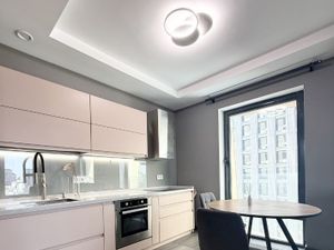 В квартире выполнен качественный дизайнерский ремонт в светлых тонах, легкая свободная атмосфера, новые техника и мебель. Окна панорамные в пол, сбоку открывается створка на проветривание. Кухня со всей необходимой бытовой техникой (варочная панель, духовой шкаф, посудомоечная машина, вытяжка, холодильник, морозильная камера). Два кондиционера, два ТВ, стиральная машина. Проведен интернет.