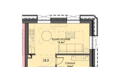 Общ.площадь 40м, кухня-гостиная 19м, комната 10м, прихожая 7.0м, ванная 3.1м. Потолки 2.85м. Есть вся мебель и техника для комфортного проживания.