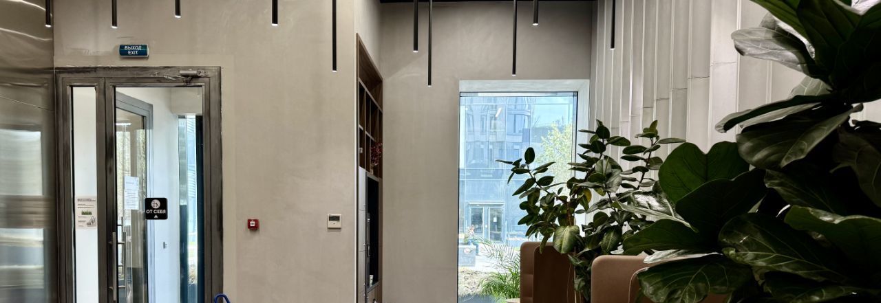 На первых этажах комплекса торговый центр (вкус вилл, салоны красоты, аптека, пекарня, кофейни, кафе, цветы и другие) и фитнес клуб.