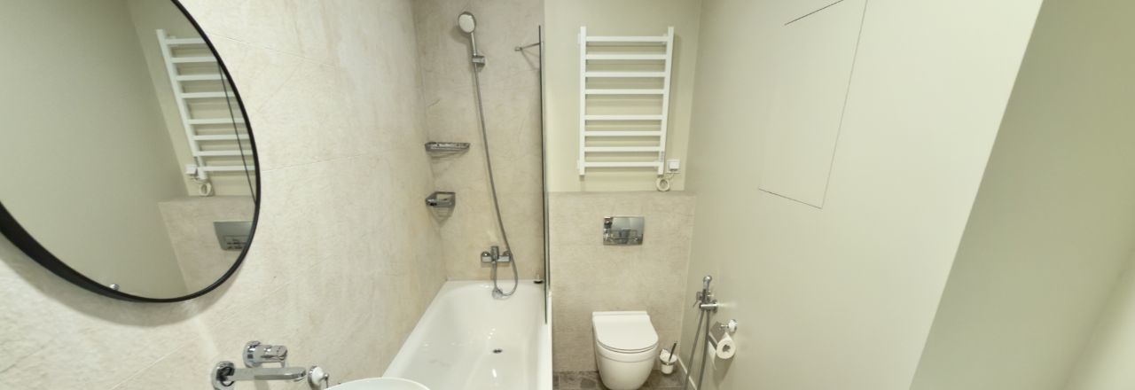 Квартира полностью укомплектована мебелью и бытовой техникой (стиральная машина с функцией сушки, посудомоечная, холодильник, варочная панель, духовой шкаф, микроволновка, вытяжка, кондиционер, телевизор).