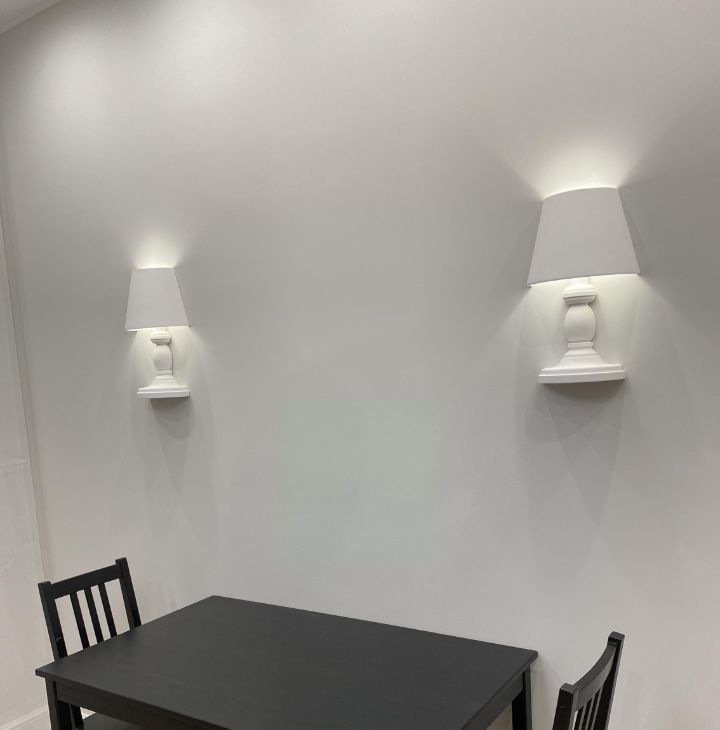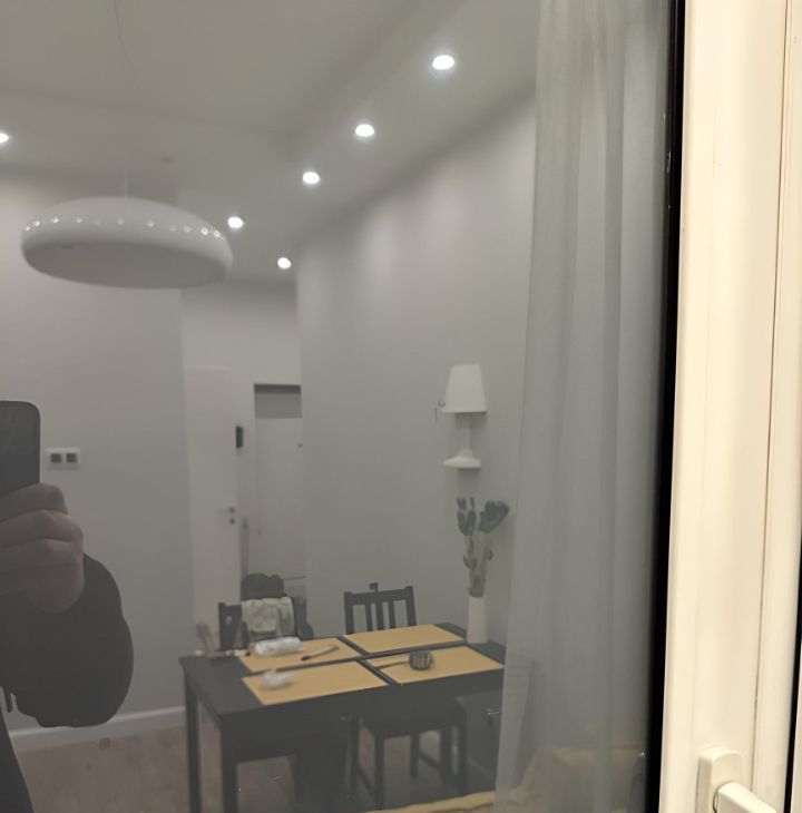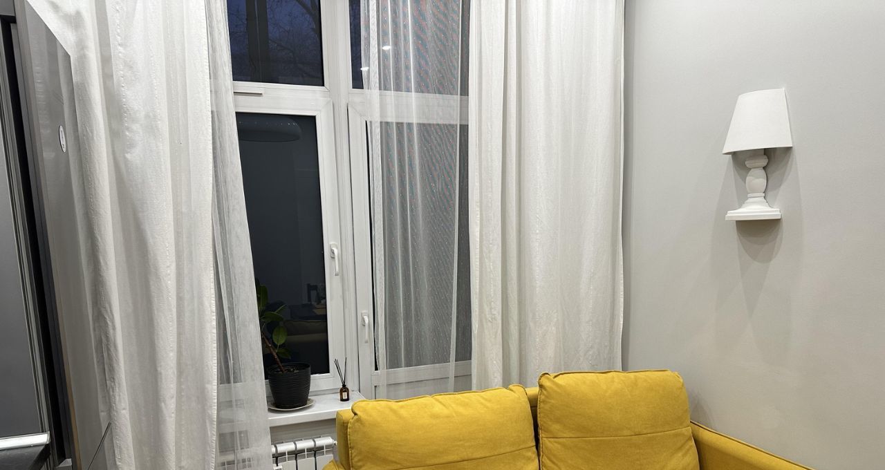 Дмитровская (несколько минут до метро). Общая площадь квартиры составляет 40 кв. м, просторная комната, кухня — 12 кв. м. Квартира находится на 1-ом этаже, однако в ней установлены Smart-окна и по нажатии одной кнопки выключателя окна становятся матовыми/непрозрачными, укрывая от посторонних глаз прохожих. Высота потолков составляет 3 метра. Планировка включает просторные кухню и комнату, гардеробную, совмещенный санузел. Из окон открывается вид на тихий двор.