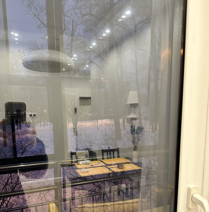 В квартире установлены smart-окна, которые по нажатию клавиши "приглушают" вид с улицы (стекло становится полностью матовым).