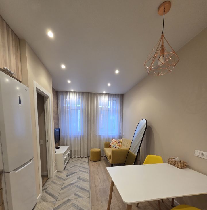 Квартира полностью готова для комфортного проживания. В распоряжении арендаторов современная кухня, оснащённая всей необходимой техникой: посудомоечная машина, холодильник, стиральная машина и телевизор. В комнате и на кухне имеется мебель. Совмещенный санузел оборудован душевой кабиной. Приятным бонусом станет наличие балкона, где можно приятно провести время на свежем воздухе.