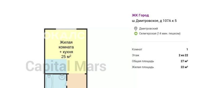 1-к кв. Москва Дмитровское ш., 107Ак5 (27.0 м²)