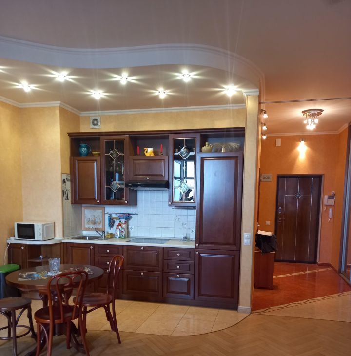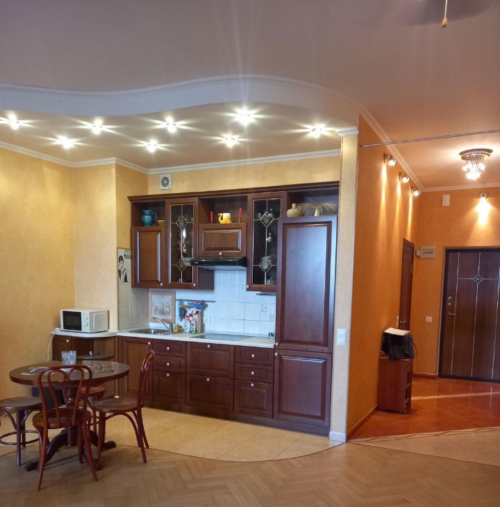 1 минута от метро! Дом бизнес класса с огороженной территорией, въезд под шлагбаум, круглосуточное видеонаблюдение. Квартира просторная, планировка - студия. Оборудована всем необходимым для комфортного проживания - кухонный гарнитур, холодильник, стиральная машина, вытяжка, электрический камин. В холле вместительный зеркальный шкаф - купэ от потолка до пола. Если нужна дополнительная мебель (кровать, стол , стулья), кроме имеющейся в квартире, собственник готов приобрести, по договоренности сторон или вывезти не нужную вам мебель.