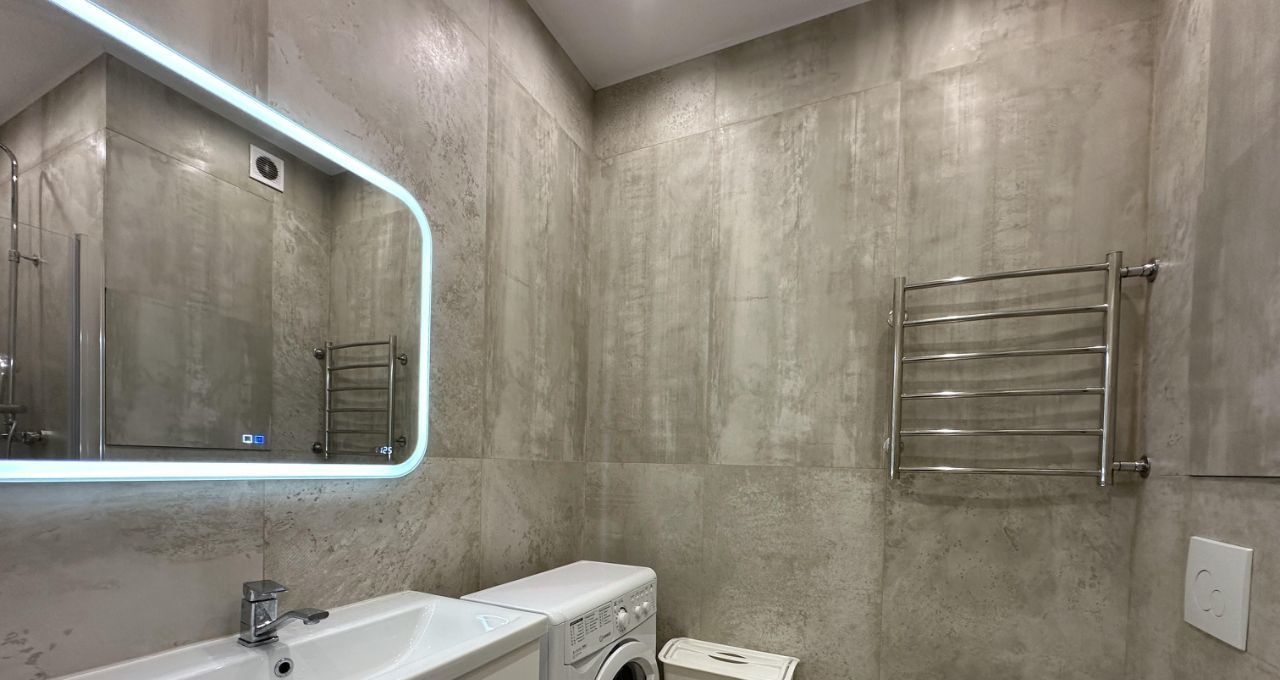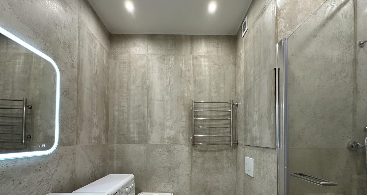 В квартире сделан евроремонт, поэтому вы будете жить в стильной и современной обстановке. Кухня полностью обставлена мебелью и оснащена всей необходимой техникой: холодильником, посудомоечной машиной и стиральной машиной. В комнате также есть мебель для комфортного проживания. Санузел совмещённый, с душевой кабиной.