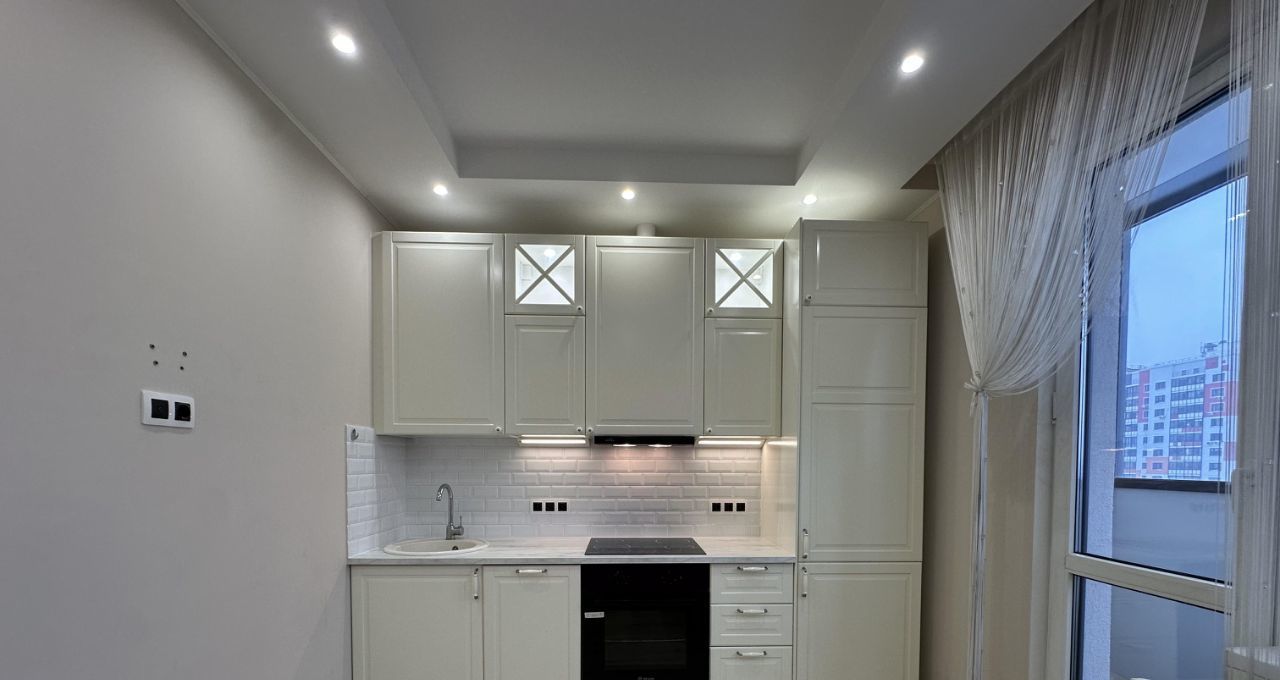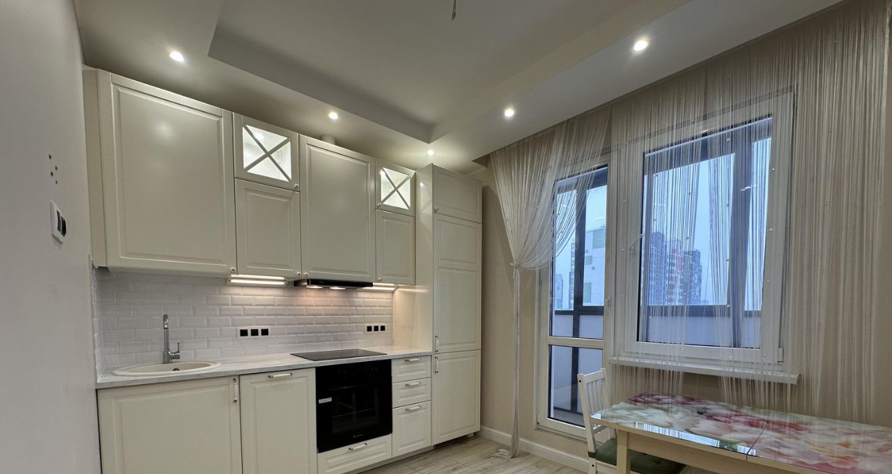 Сдаётся уютная однокомнатная квартира в современном доме 2016 года постройки. Квартира площадью 35 кв. м находится на 8-м этаже 19-этажного панельного здания. Жилая площадь составляет 17 кв. м, кухня — 10 кв. м, а высота потолков — 2.8 метра. Окна выходят во двор, обеспечивая тишину и уединение.