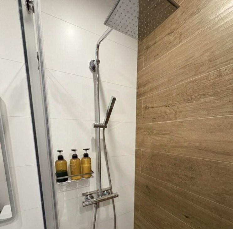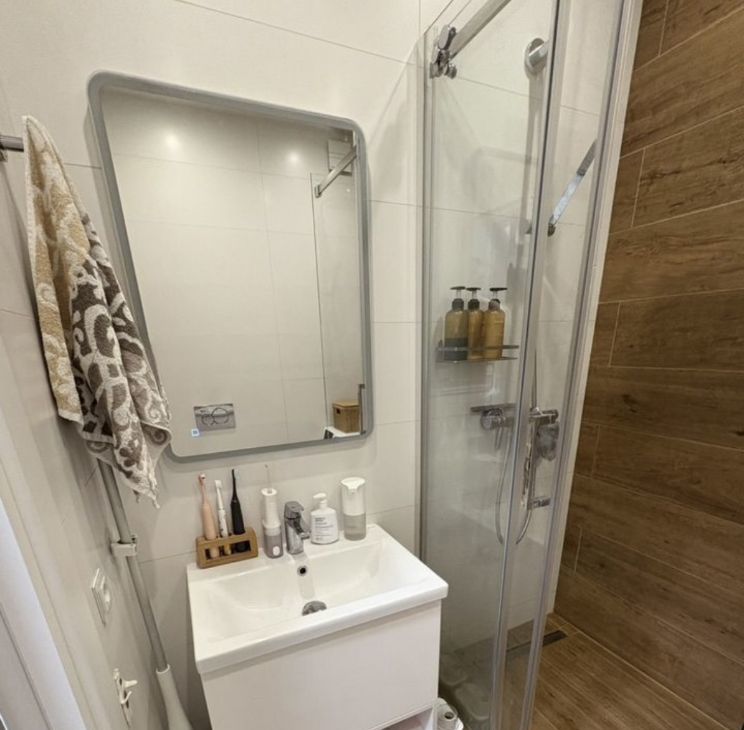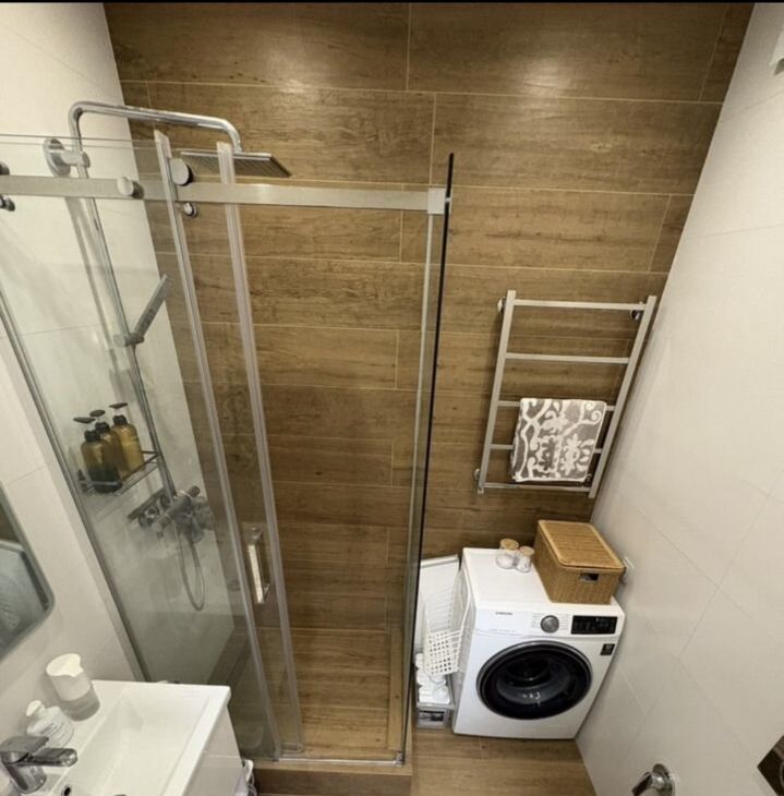 - Душевая кабина 120х90 см, полотенцесушитель от системы ГВС.