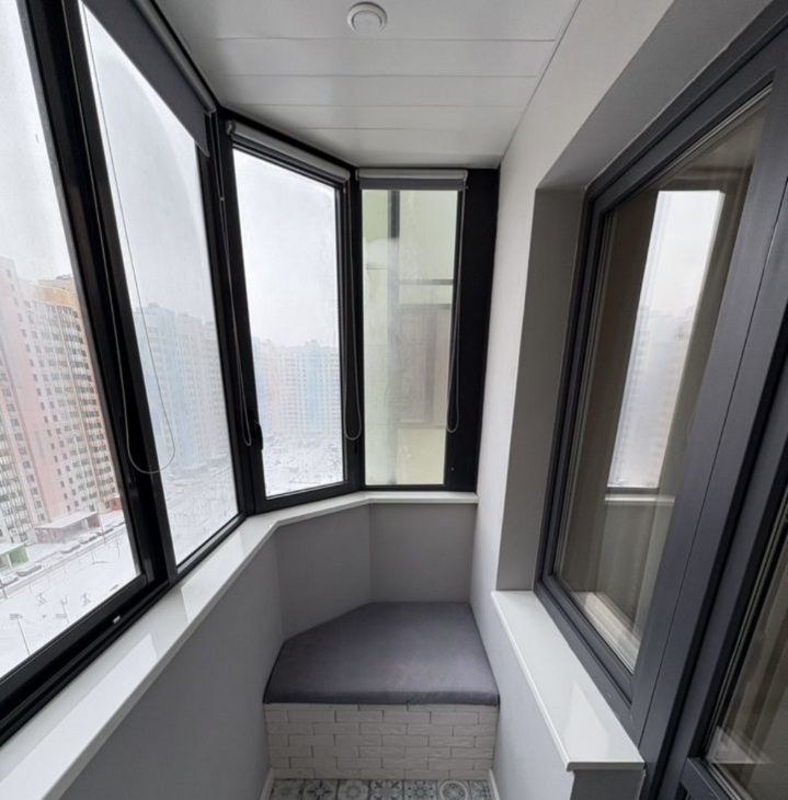 - Свой балкон с остеклением, отделкой, проведенным электричеством и мебелью (шкаф, мягкая тумба для хранения).