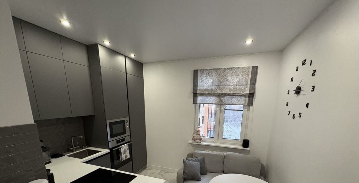 - Потолки: натяжные в коридоре, кухне и ванной.