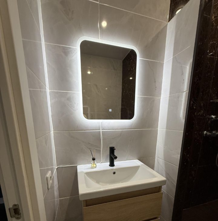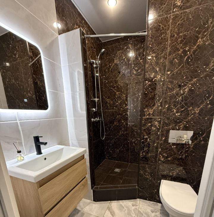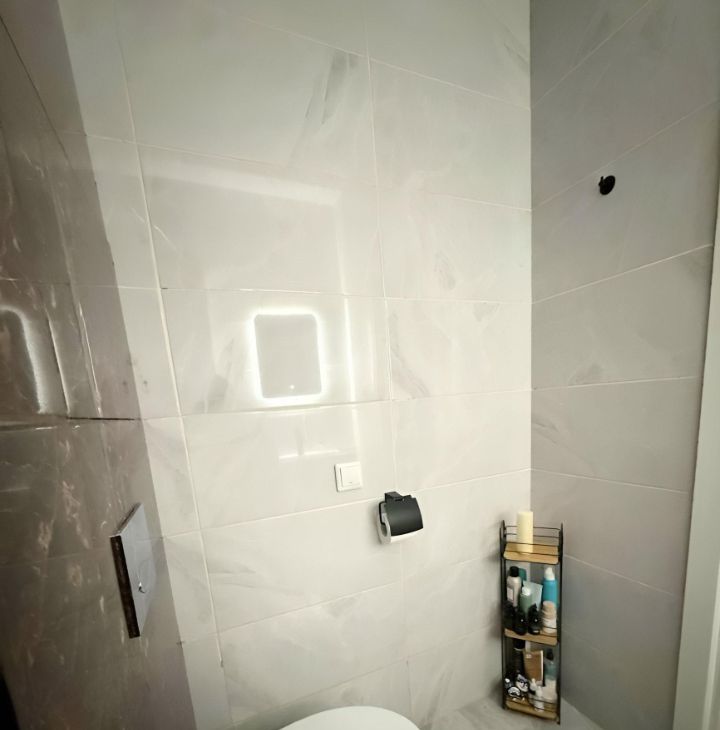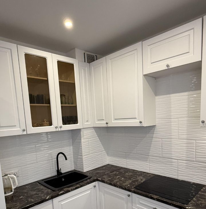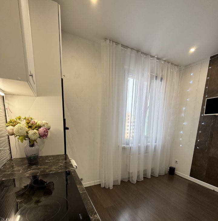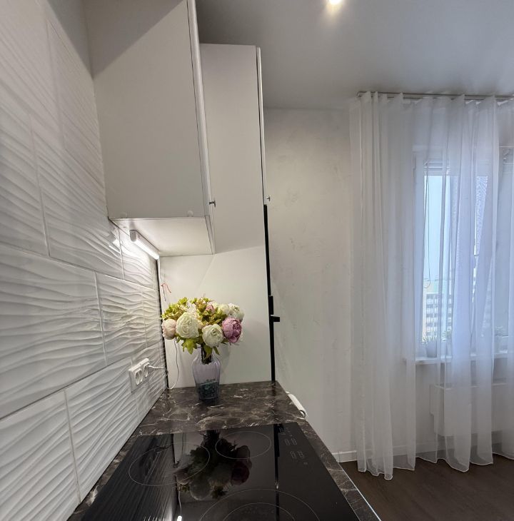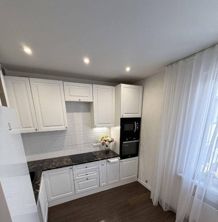17-й этаж (не последний!), сверху 2 технических этажа - защита от протекании + не жарко летом Современная кухня с полной встроенной техникой и холодильником NoFrost Indesit Санузел с душевой кабиной и испанской керамогранит