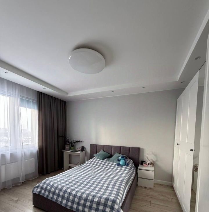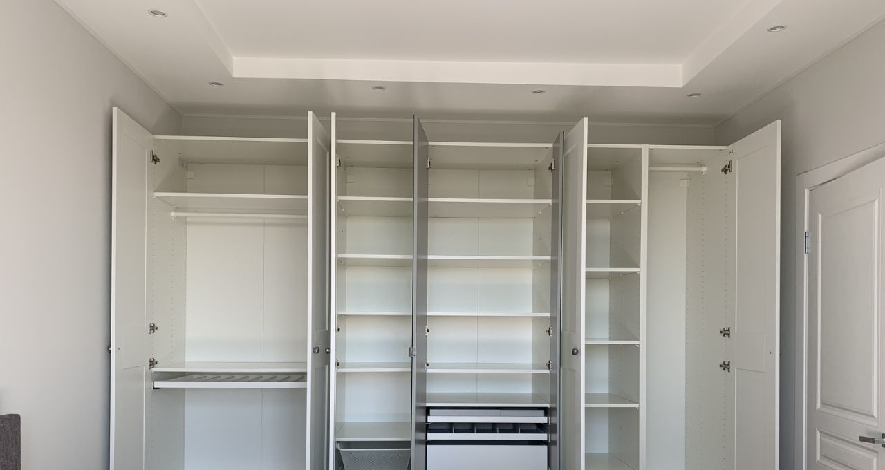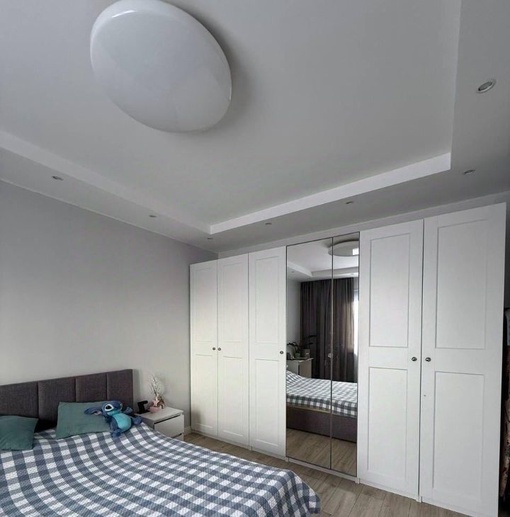 Спальня с большой двухспальной 160*200 кроватью с подъёмным механизмом и жестким высоким матрасом IKEA. Шкаф IKEA 3,75м с полным оснащением.