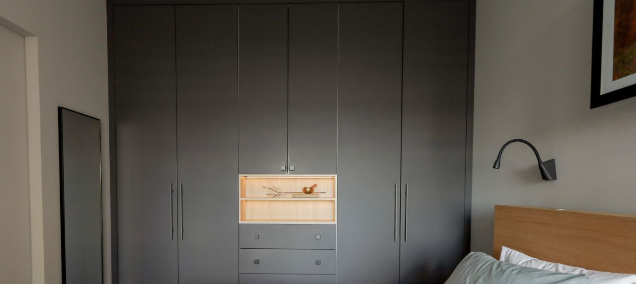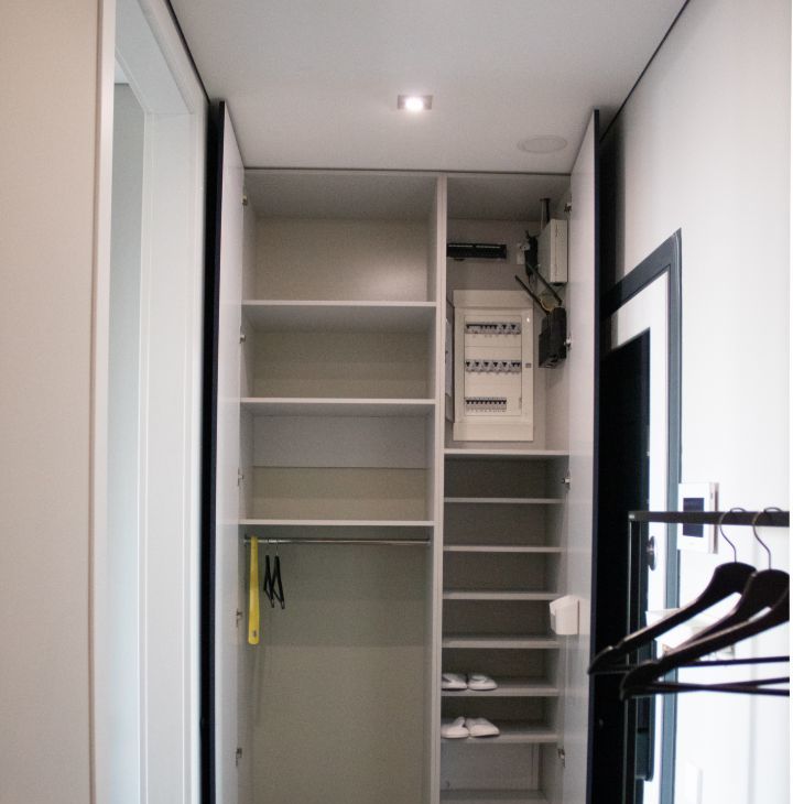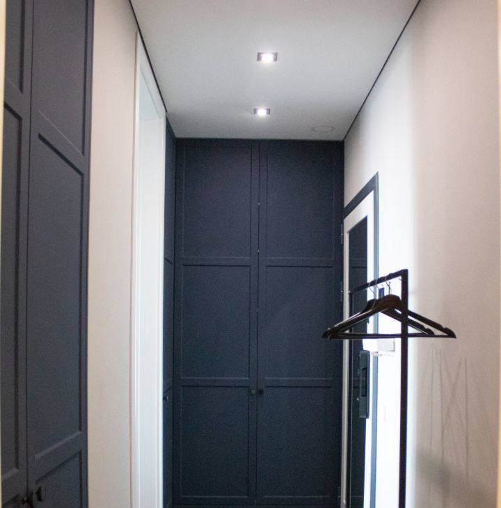 Установлены двери invisible (ProfilDoors). Встроенная мебель на заказ.