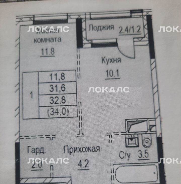 1-к кв. Москва Дмитровское ш., 73Б (34.0 м²)