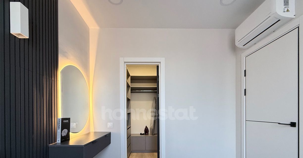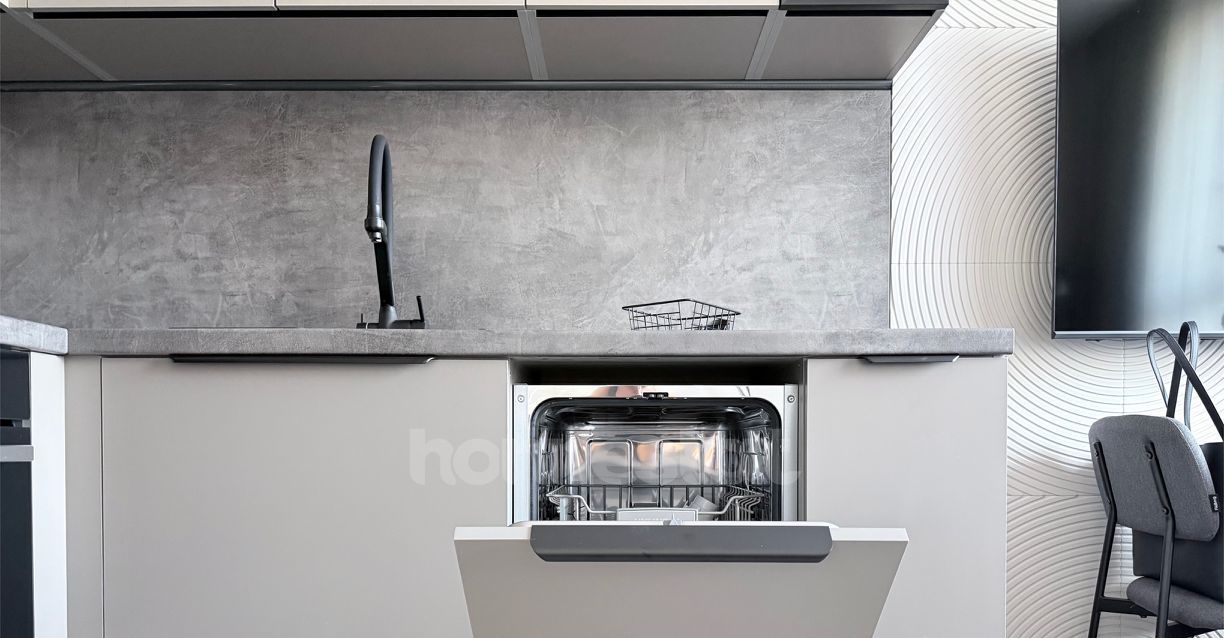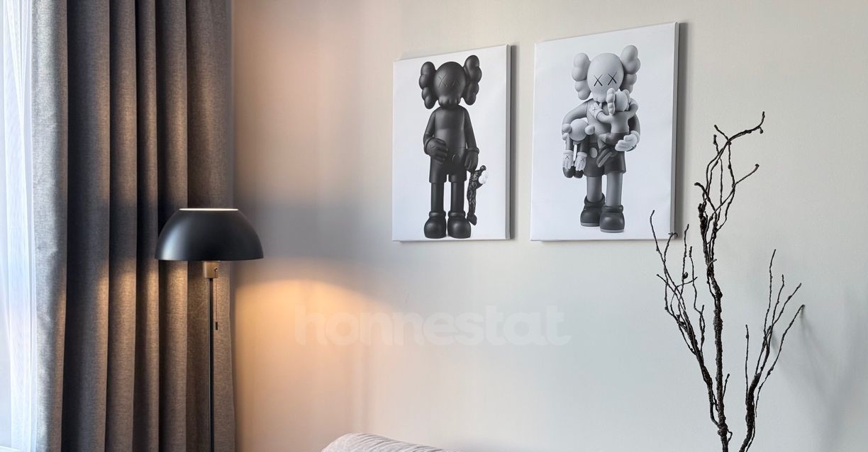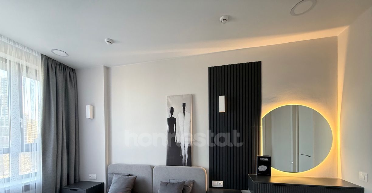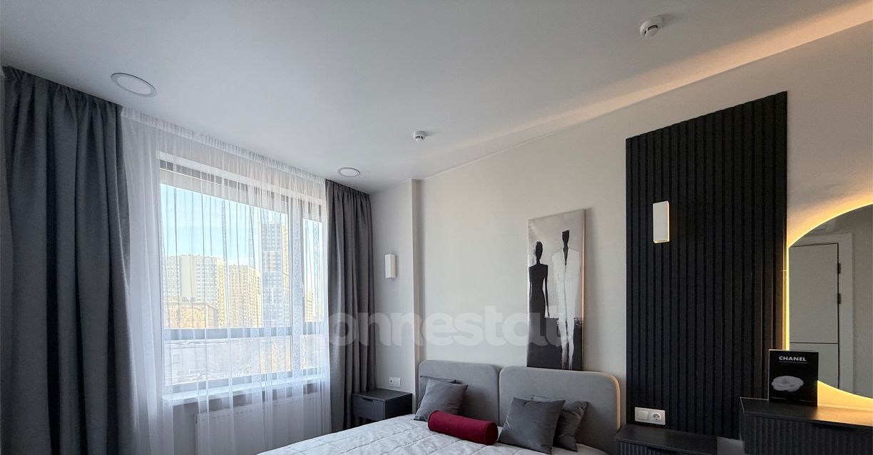 В квартире выполнен дизайнерский ремонт. Просторная жилая комната площадью 16 кв. м обставлена мебелью и оснащена всей необходимой техникой: кондиционером, телевизором, холодильником, посудомоечной и стиральной машинами. Кухня площадью 11 кв. м также меблирована. В совмещенном санузле установлена ванна. Окна выходят во двор, что обеспечивает тишину и уединение.