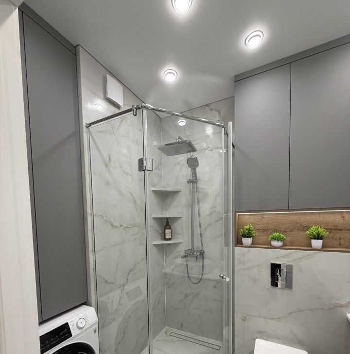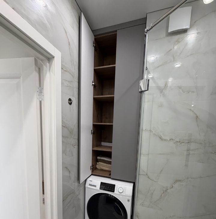В квартире кондиционер, посудомоечная машина, стиральная машина, холодильник, телевизор.
