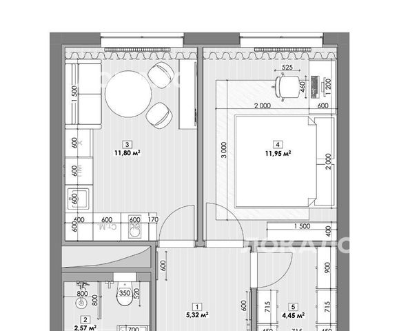 Планировка: просторная кухня, спальня, гардеробная, совмещённый санузел с душевой.