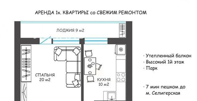 1-к кв. Москва Дмитровское ш., 76к1 (40.0 м²)