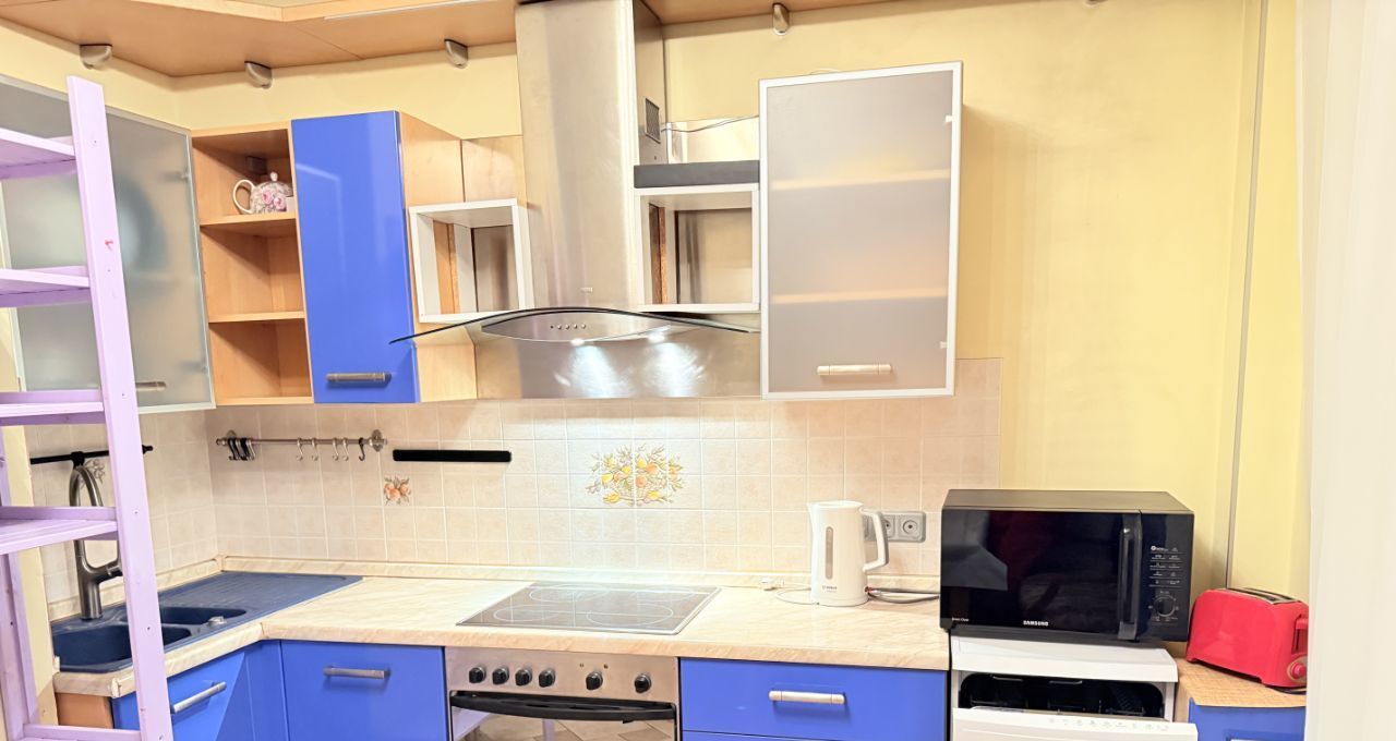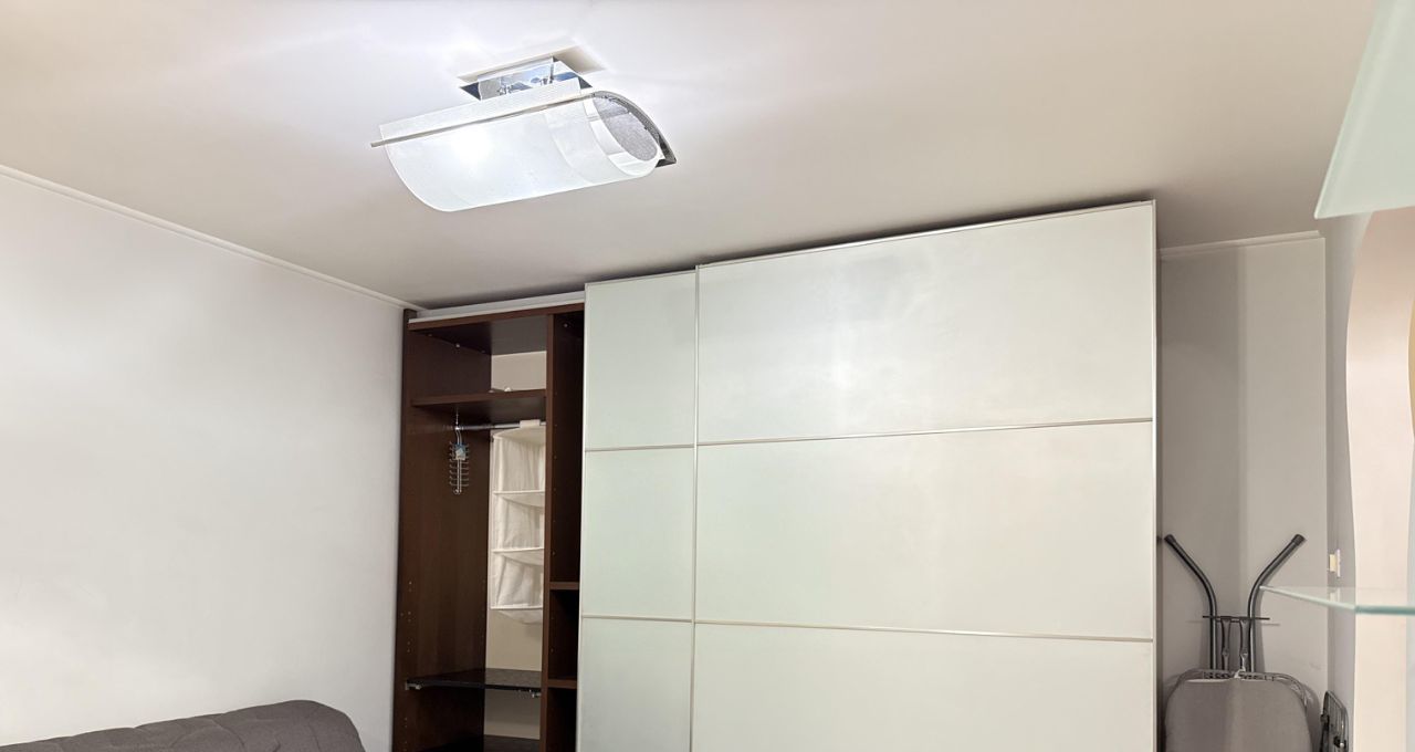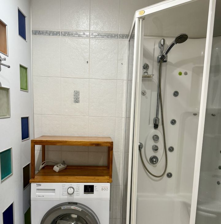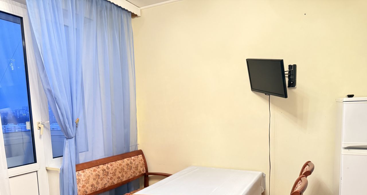 Спальня просторная и светлая, есть вся необходимая мебель для проживания. Очень много мест для хранения. В комнате располагается большая двуспальная с матрасом, двуспальный диван, вместительный шкаф-купе, стеллаж, тумба, письменный стол и кронштейн под телевизор. На большой кухне располагается современный функциональный кухонный гарнитур с бытовой техникой (встроенные электроплита с духовым шкафом, стиральная машина, холодильник, микроволновая печь, тостер, чайник, посудомоечная машина). Также на кухне располагается обеденный стол, диван и стулья на 4 персоны, телевизор. Из кухни можно попасть на чистый и аккуратный застекленный балкон, на полу положен ковролин. С балкона открывается вид во двор и на панораму района Чертаново центральное. Санузел совмещен, светлый, чистый и аккуратный, отделан плиткой до потолка. Есть большая, чистая душевая кабина с массажными элементами. Вся сантехника чистая и аккуратная. В прихожей располагается подставка под обувь. Входная дверь двойная, надежная.