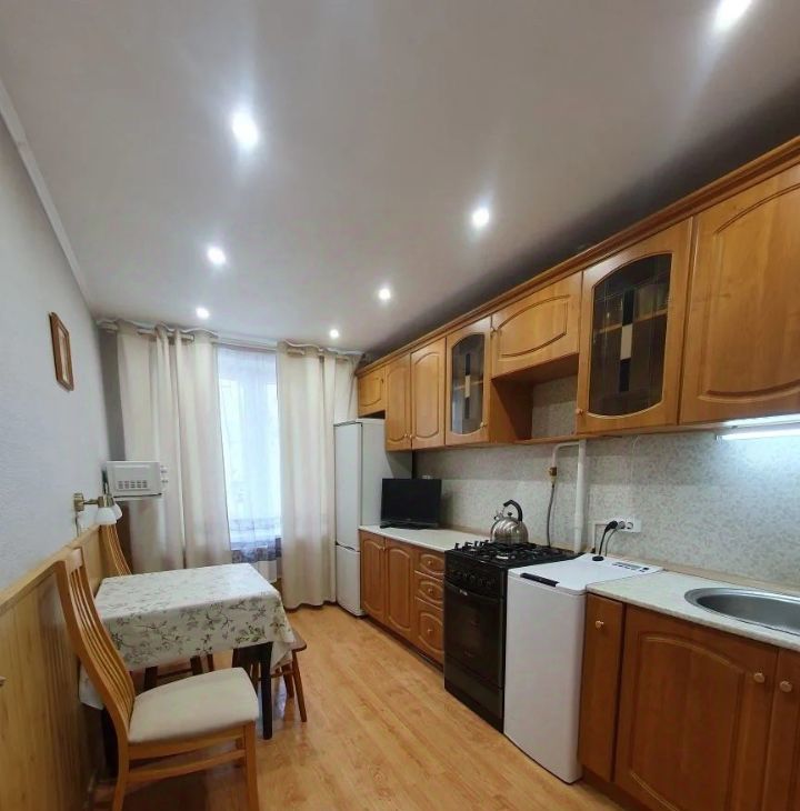 Константин, уютная светлая квартира большой площади на длительный срок. Кухонный гарнитур, двухкамерный холодильник, стиральная машина автомат, двуспальная кровать, угловой диван и шкаф, комод, журнальный стол, СУС в кафеле, залог разбивают